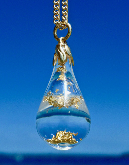 Since then, each Golden Water Drop Keeper has hers/his own journey with it: Some do healings with it, some began to be guided to waterplaces to become water keepers and spread the informations for the new golden age, some experience a journey of the healing of their heart and an increased vibration that leads them to their path, some are just touched and relieved that these informations have touched earth and wear them as a jewel that radiates the golden frequency and the codes in their surrounding, without any need of doing more than being where they are.